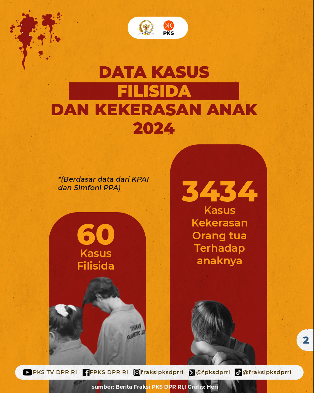 Berdasarkan data KPAI, tercatat lebih dari 60 kasus filisida sepanjang tahun 2024. Adapun menurut data Simfoni PPA, terdapat setidaknya 3.434 kasus kekerasan orang tua terhadap anaknya di tahun 2024.