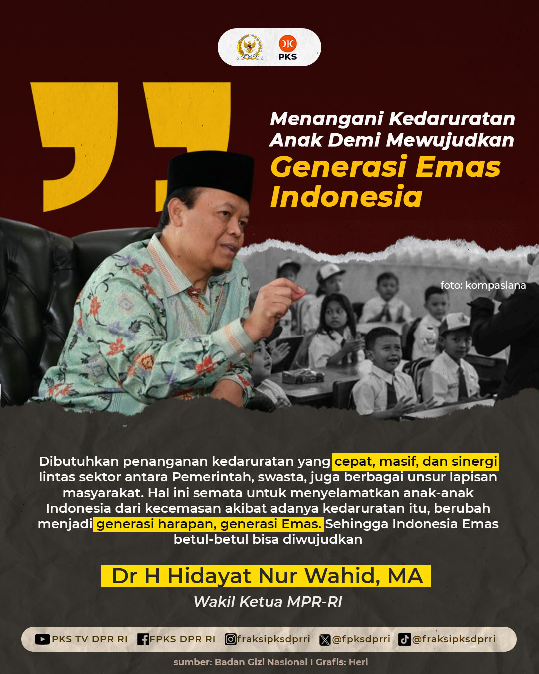 “Potensi Indonesia Emas hanya bisa dicapai jika anak-anak Indonesia dapat tumbuh kembang dalam kondisi optimal, tidak justru terbelenggu dan kehilangan motivasi karena mereka tumbuh berkembang di tengah dunia bahkan ayah dan ibunya sendiri yang jahat pada Anak,” disampaikan Hidayat dalam keterangannya di Jakarta, Selasa (14/01/2025).