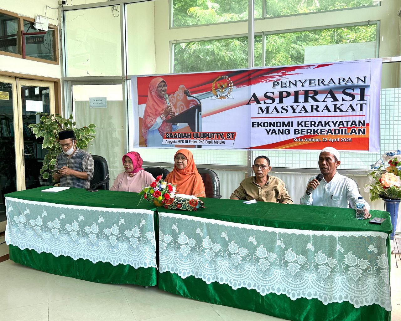 Ambon (25/04) — Anggota DPR RI Fraksi PKS dari Daerah Pemilihan Maluku, Saadiah Uluputty, menggelar kegiatan penyerapan aspirasi masyarakat bertema ‘Ekonomi Kerakyatan dan Berkeadilan’ yang dilaksanakan di Kampus IAIN Ambon.