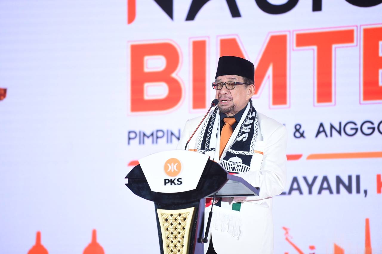Jakarta (28/04) — Ketua Majelis Syuro Partai Keadilan Sejahtera (PKS), Dr. Salim Segaf Aljufri, memberikan pidato penuh semangat dalam pembukaan Konsolidasi Nasional dan Bimbingan Teknis Nasional (Bimteknas) Anggota Fraksi PKS se-Indonesia di Ruang Birawa, Hotel Bidakara, Jakarta, Senin (28/04/2025).