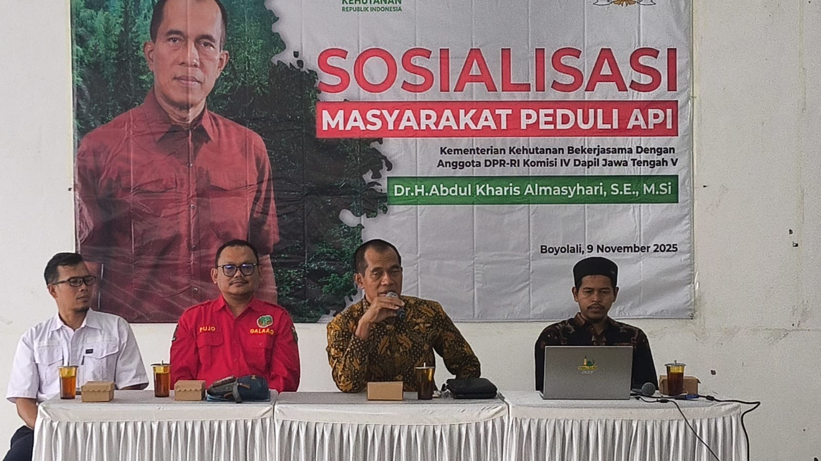 Boyolali (09/11) — Wakil Ketua Komisi IV DPR RI, Dr. Abdul Kharis Almasyhari, menghadiri kegiatan Sosialisasi Masyarakat Peduli Api (MPA) yang diselenggarakan Balai Pengendalian Kebakaran Hutan dan Lahan (Balai Damkarhut) di Kabupaten Boyolali, Jawa Tengah. Kegiatan ini menjadi langkah penting dalam memperkuat partisipasi masyarakat dalam upaya pencegahan kebakaran hutan dan lahan.