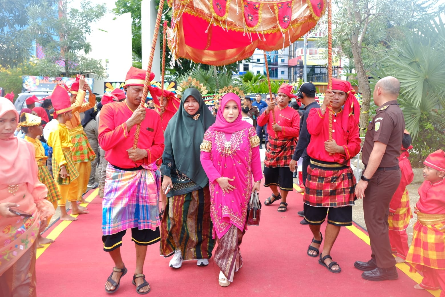 Saat turun dari kendaraan, ia langsung dikawal dan dipayungi sebagai salah satu tamu istimewa oleh pasukan Tubarani Istana Gowa. Prosesi itu berlangsung hingga menuju tangga Balla Lompoa.