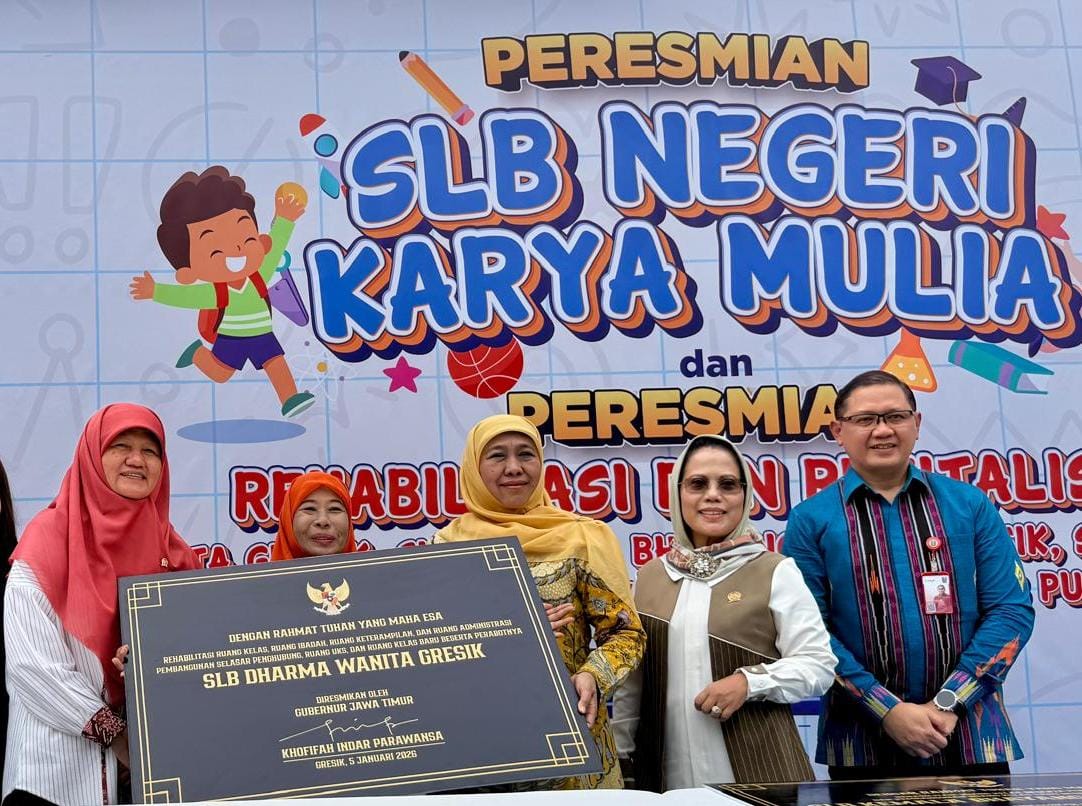 Selain peresmian SLB-B Negeri Karya Mulia Surabaya, Reni juga mengapresiasi langkah Pemerintah Provinsi Jawa Timur yang secara paralel meresmikan enam SLB negeri lainnya di berbagai wilayah Jawa Timur.