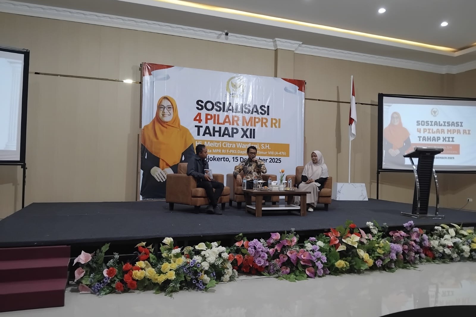 Mojokerto (01/02) — BMT Permata Kota Mojokerto menyelenggarakan kegiatan Sosialisasi 4 Pilar MPR RI yang menghadirkan Anggota DPR RI dari Fraksi PKS Komisi XII, Meitri Citra Wardani, dari Dapil Jawa Timur VIII. Kegiatan yang berlangsung secara hybrid ini disambut dengan antusias tinggi oleh para peserta, menunjukkan semangat kuat dalam memperkuat nilai-nilai kebangsaan di tengah masyarakat (15/12).