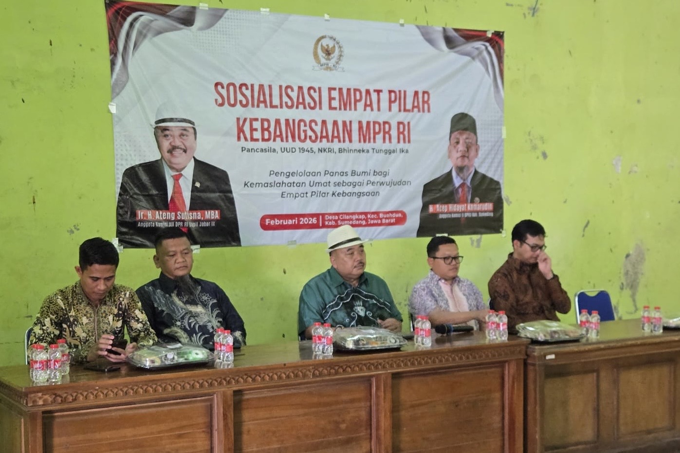 Sumedang (17/02) — Anggota DPR RI Fraksi PKS Dapil Jawa Barat IX, Ateng Sutisna, menggelar kegiatan Sosialisasi Empat Pilar Kebangsaan di Sumedang dengan tema “Pengelolaan Panas Bumi bagi Kemaslahatan Umat sebagai Perwujudan Empat Pilar Kebangsaan.” Kegiatan ini menghadirkan masyarakat lingkar Gunung Tampomas yang selama ini terdampak polemik rencana pengembangan panas bumi.