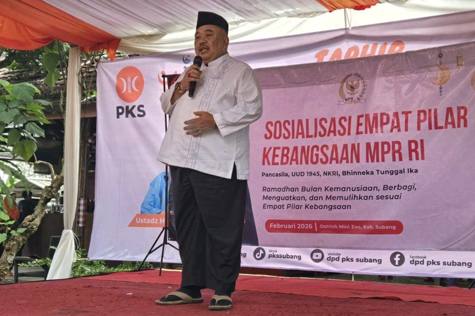 Subang (20/02) — Anggota DPR RI Dapil Jawa Barat IX Fraksi PKS, Ateng Sutisna, menggelar Sosialisasi Empat Pilar Kebangsaan dengan tema “Ramadhan Bulan Kemanusiaan: Berbagi, Menguatkan, dan Memulihkan Sesuai Empat Pilar Kebangsaan” di Ostrich Mini Zoo, Subang pada Selasa (10/02).